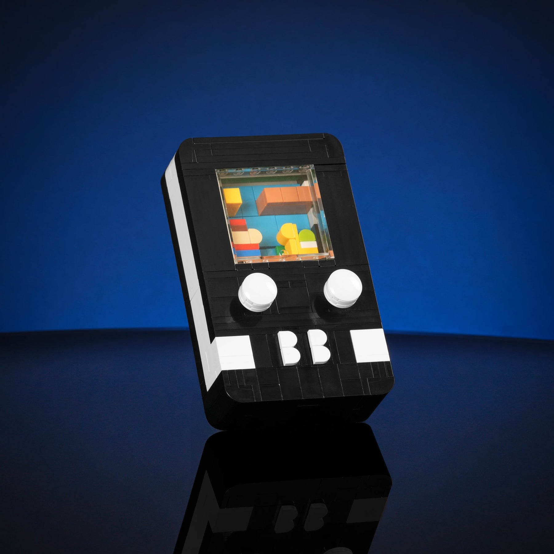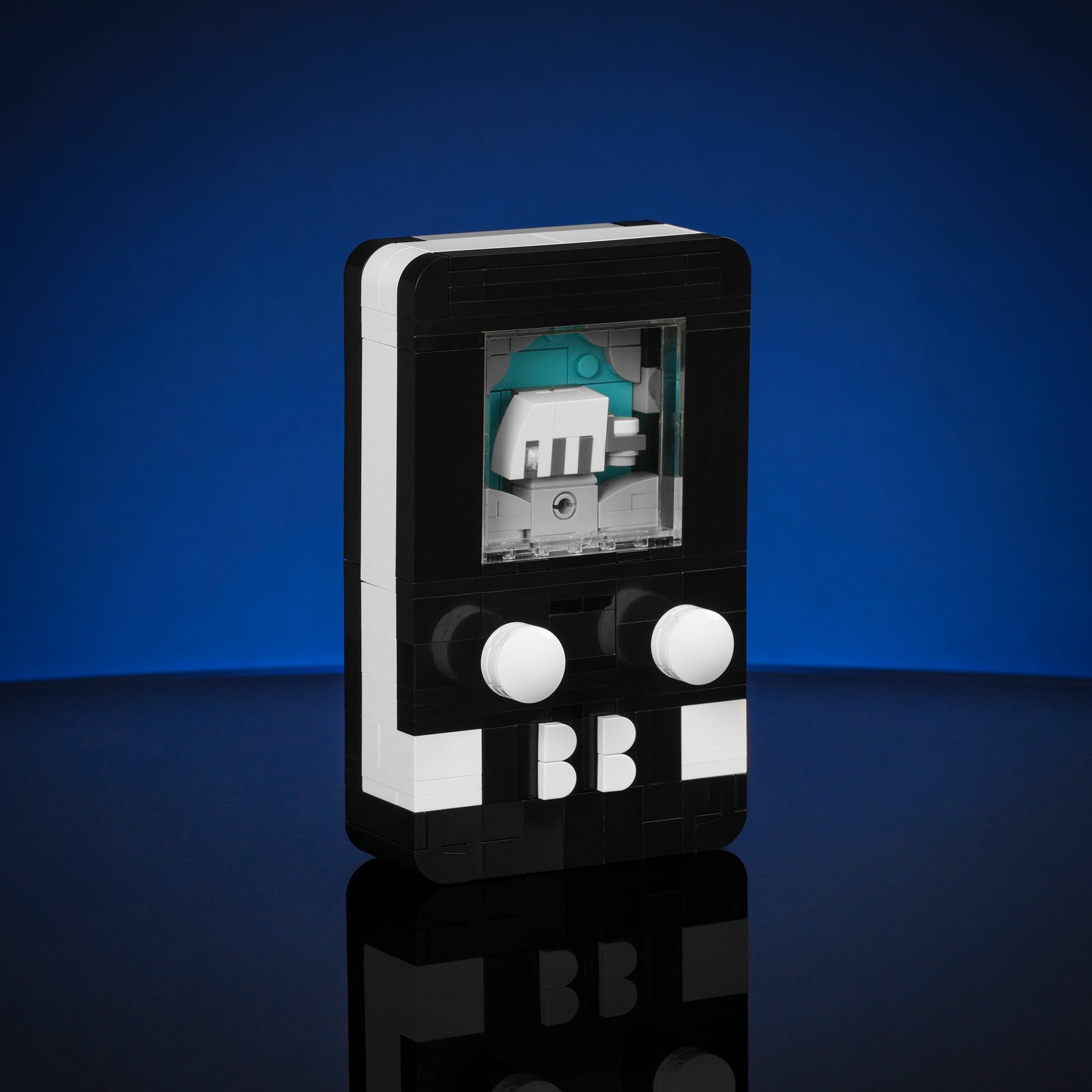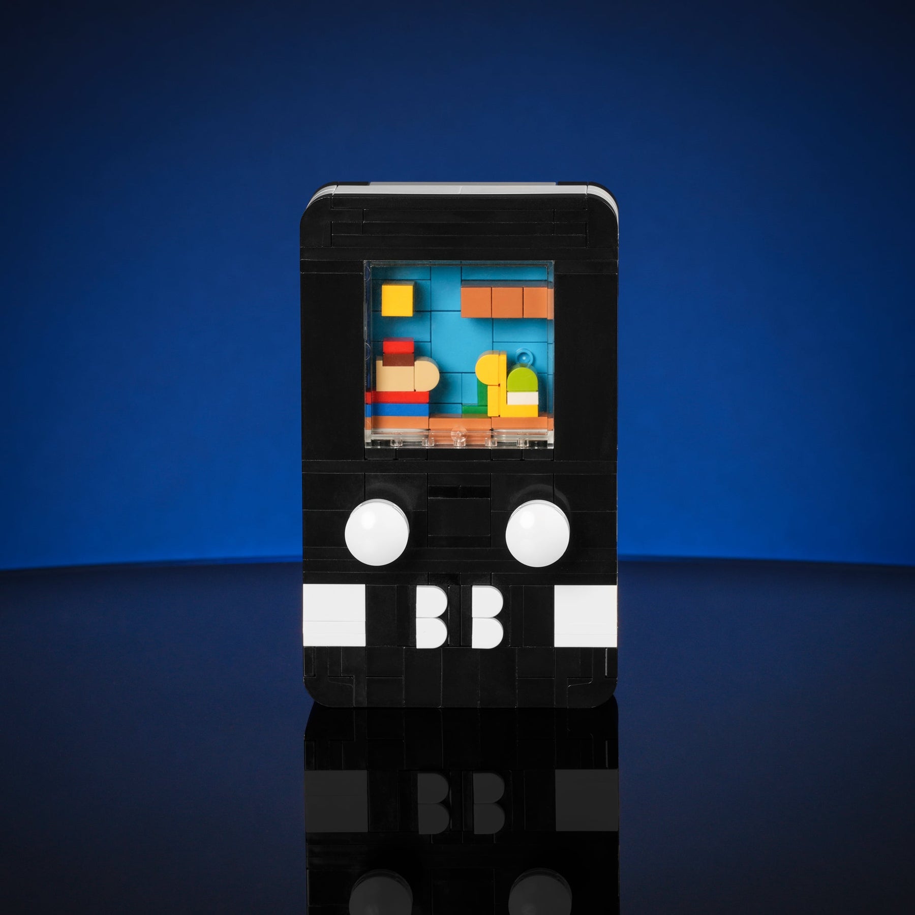 Designed by Matt Pino, this handheld model is designed with playability in mind - just like the handheld gaming system you grew up with! Complete with 3 interchangeable interactive game scenes starring your favorite Bricker Builds models. Make the micro Italian Plumber jump, soar with Mini Appa, and battle with the Sabers by pressing on the buttons
