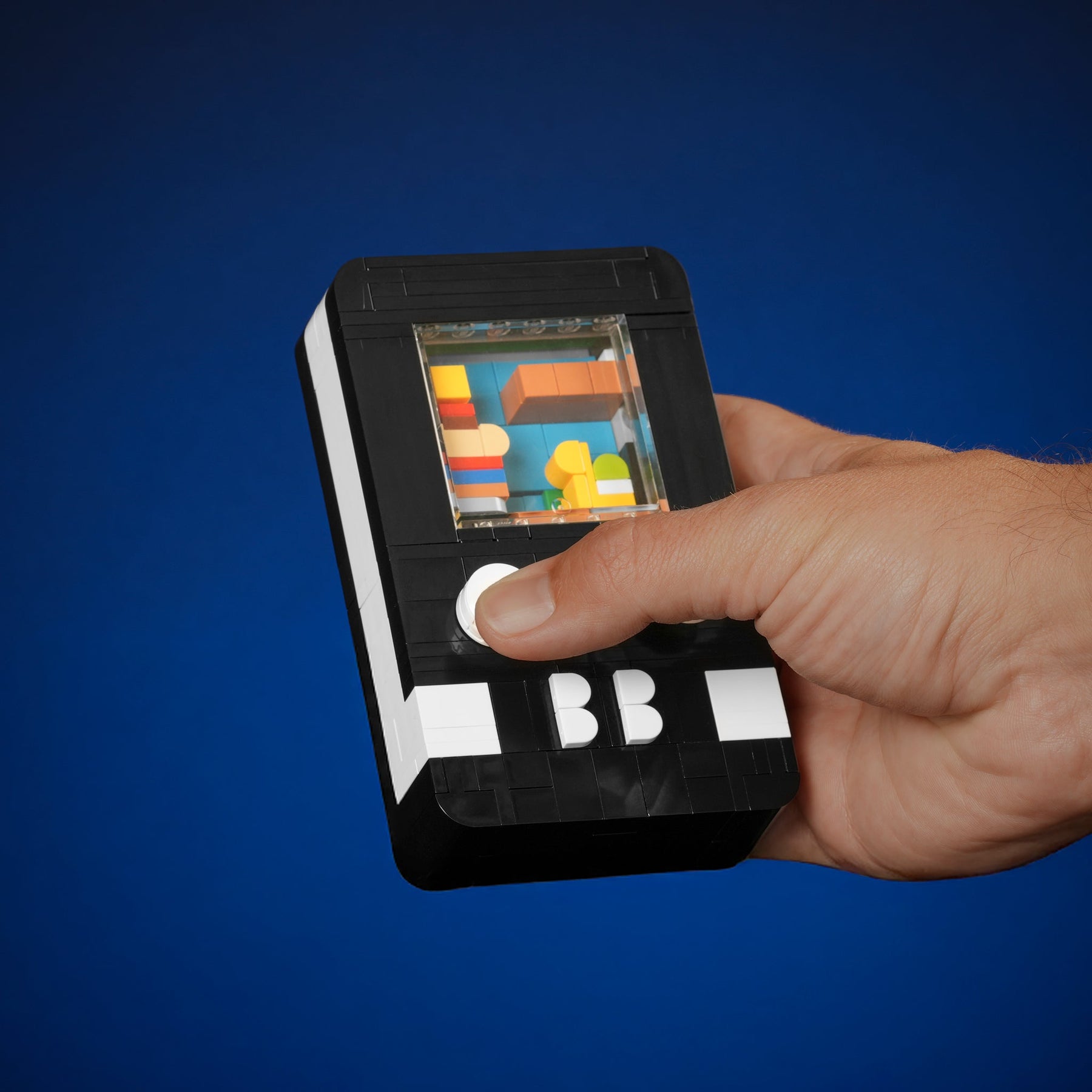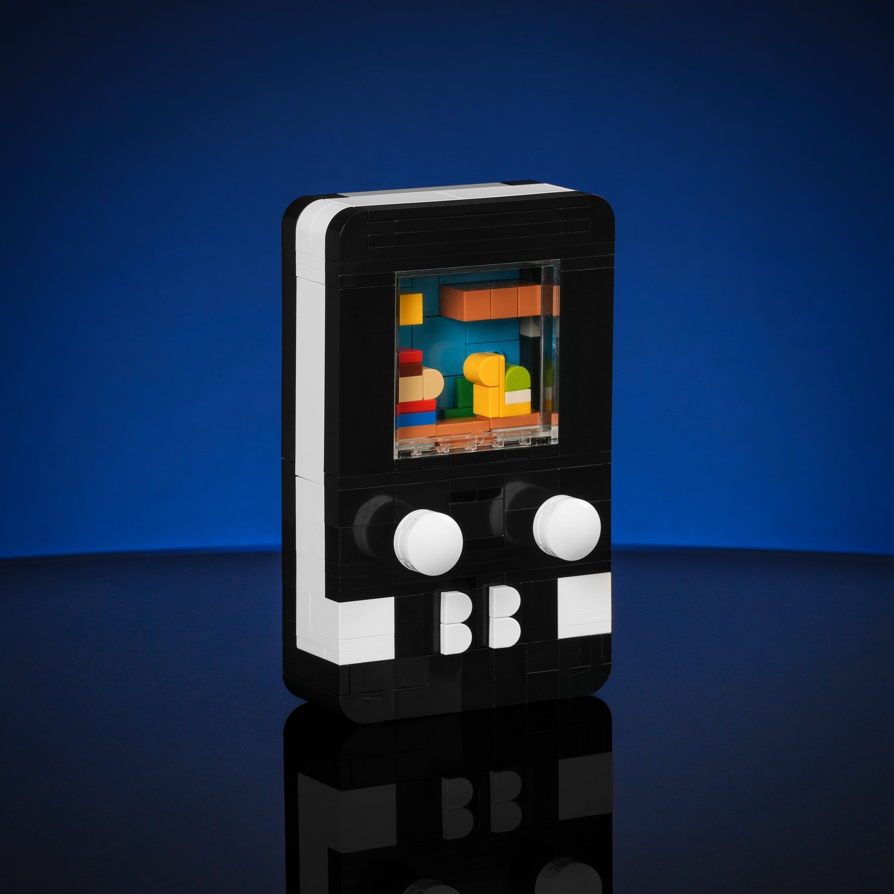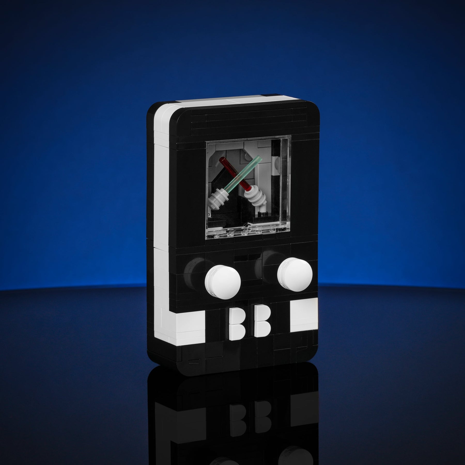 Designed by Matt Pino, this handheld model is designed with playability in mind - just like the handheld gaming system you grew up with! Complete with 3 interchangeable interactive game scenes starring your favorite Bricker Builds models. Make the micro Italian Plumber jump, soar with Mini Appa, and battle with the Sabers by pressing on the buttons