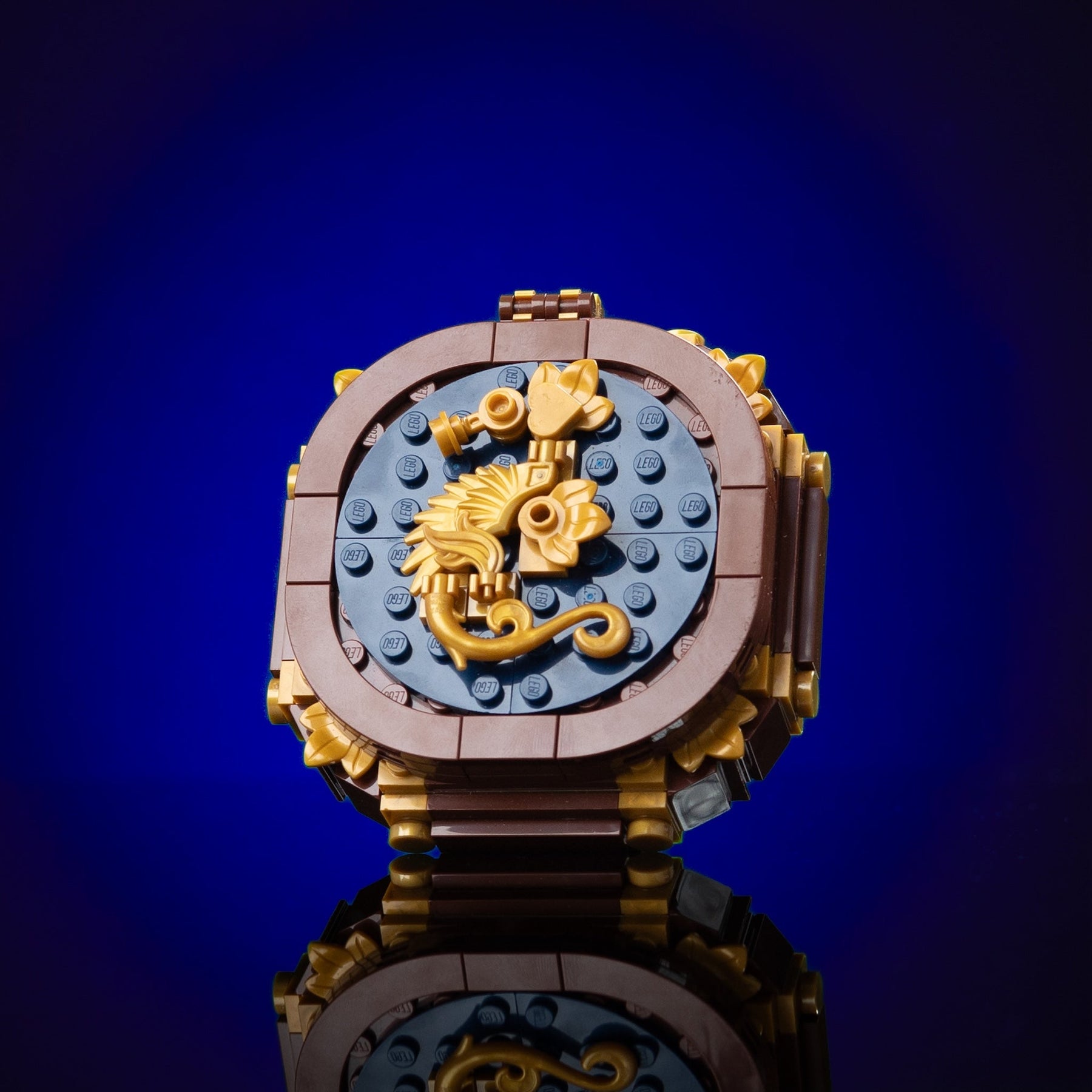 This custom life-sized Pirate Compass was designed in partnership with Steven Erickson, and his unique style is evident throughout the piece. This build includes a golden seahorse, lid that opens, and needle that turns from a gear on the bottom of the build! This kit is a necessity for anyone planning to sail the high seas!